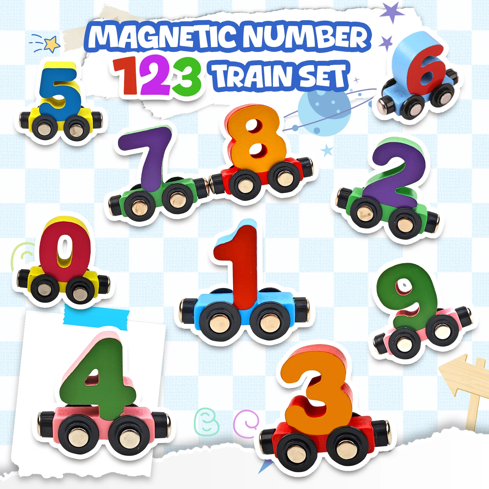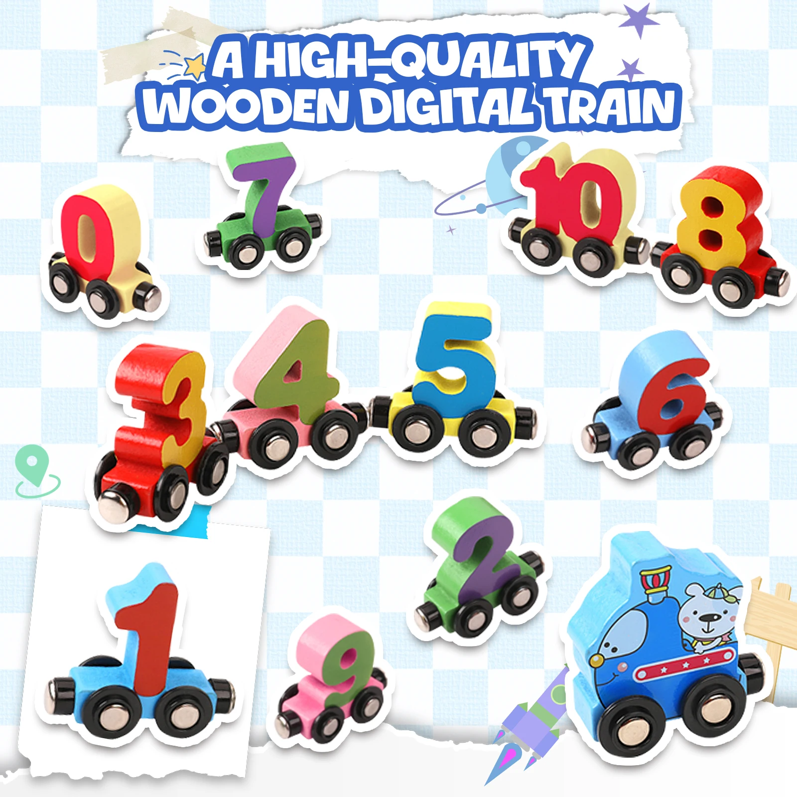 12PCS/Sets Magnetic Digital Train Colorful Cognition Wooden Toy