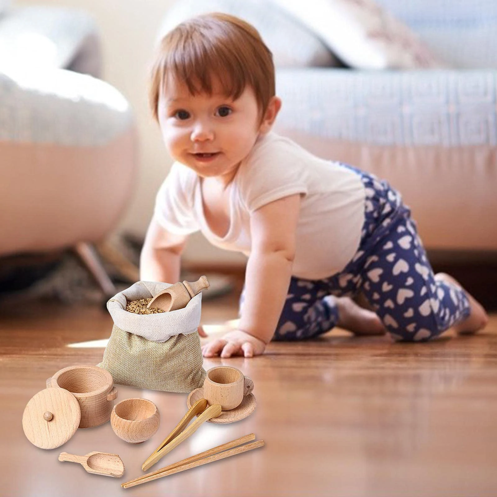 Be the first to review “Sensory Bin Tools Toddler Montessori Toys Set Of 8 Wooden Scoops And Wooden Tongs”